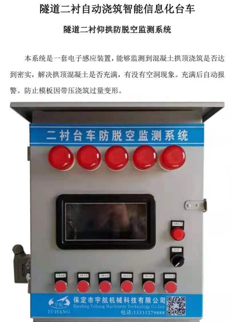 智能信息化臺(tái)車(chē),它加裝了攝像、防脫空監(jiān)測(cè)系統(tǒng)、通過(guò)插入式高頻振搗系統(tǒng)對(duì)振搗時(shí)間、頻次、插入深度等參數(shù)自動(dòng)控制、激光掃描系統(tǒng)、流量泵計(jì)量、入模溫度、壓力傳感器實(shí)時(shí)監(jiān)測(cè)系統(tǒng),臺(tái)車(chē)自動(dòng)行走系統(tǒng)、激光定位系統(tǒng)、及臺(tái)車(chē)堵頭板專(zhuān)利產(chǎn)品的應(yīng)用,這臺(tái)智能信息化自動(dòng)澆筑臺(tái)車(chē),加裝了“宇航e管家”,實(shí)現(xiàn)了自動(dòng)澆筑智能化信息化,實(shí)時(shí)監(jiān)控,實(shí)施儲(chǔ)存,克服了隧道二襯脫空、蜂窩麻面等質(zhì)量問(wèn)題,減少人工 提高了工效 節(jié)約了成本。